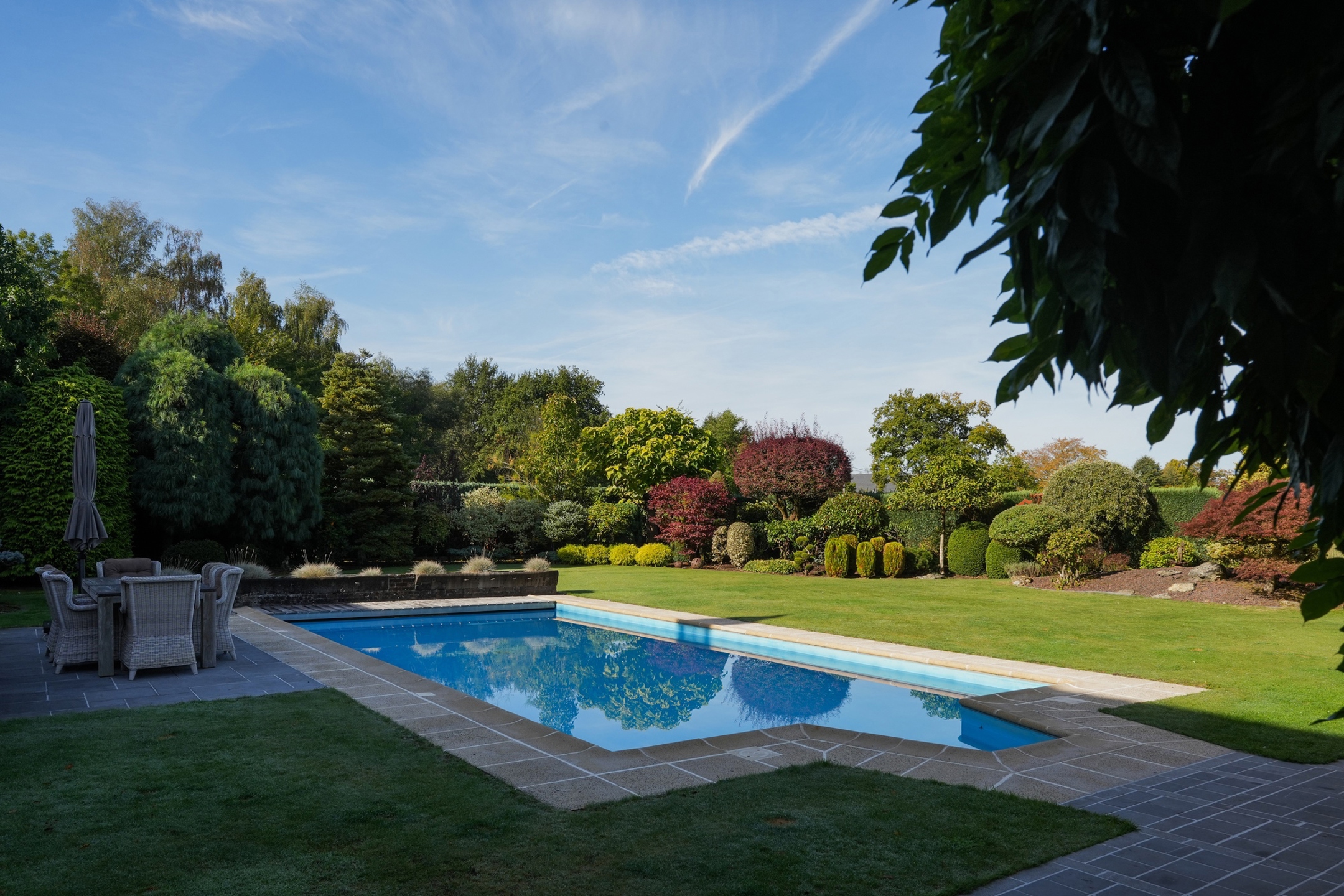 La piscine de 10x5m est chauffée grâce à une pompe à chaleur et est agrémentée d’un poolhouse avec douche, toilette et lavabo.