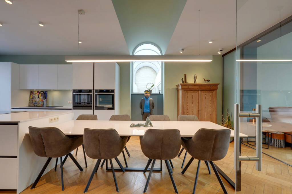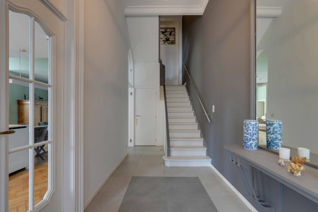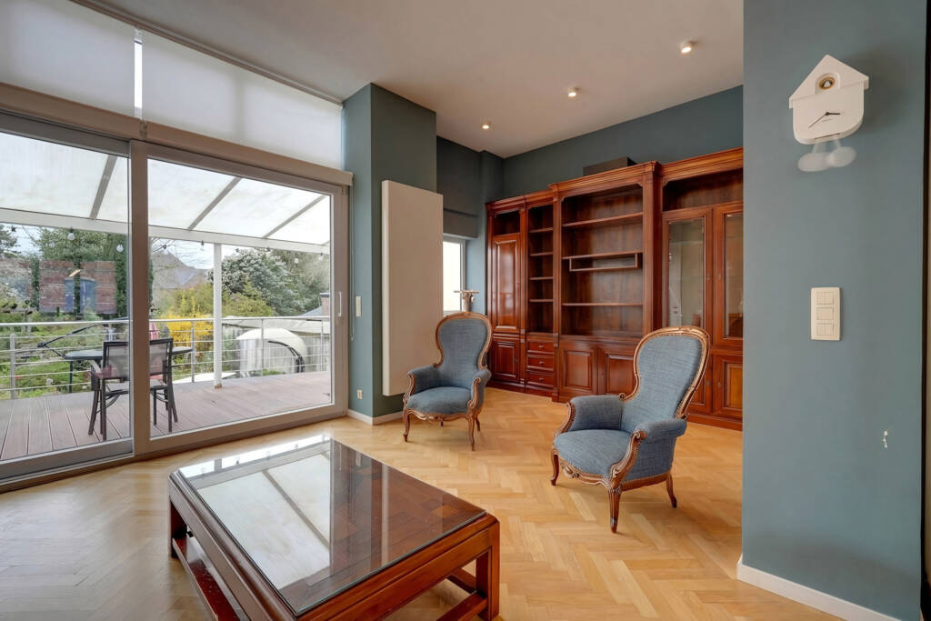 La partie principale se compose, au rez-de-chaussée, d’un vaste hall d’entrée, d’une superbe cuisine équipée neuve avec coin salle à manger, ainsi que d’un élégant salon.Au premier étage, un hall de nuit dessert une grande bibliothèque, un dressing et deux chambres, dont une suite parentale.Au deuxième étage, vous découvrirez une seconde suite parentale comprenant une chambre, un coin dressing et une salle de bains, ainsi qu’une grande chambre supplémentaire.Une seconde partie du bâtiment, idéale pour l’exercice d’une profession libérale ou pour un logement indépendant, comprend un hall d’entrée, un bureau, un hall avec WC, une cuisine et une chambre avec salle de bains.La maison est entièrement cavée, offrant de nombreux espaces de rangement.