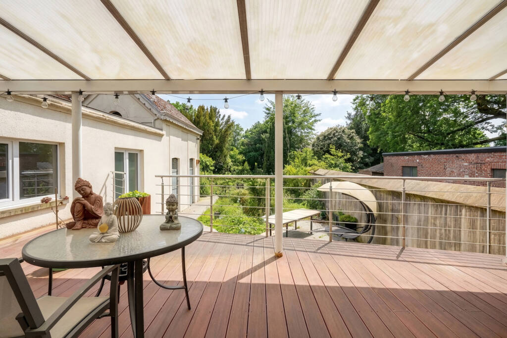 À l’extérieur, vous profiterez d’une belle terrasse avec jardin, de deux remises, d’un petit jardin à l’avant ainsi que d’un emplacement de parking sécurisé par un portail électrique.