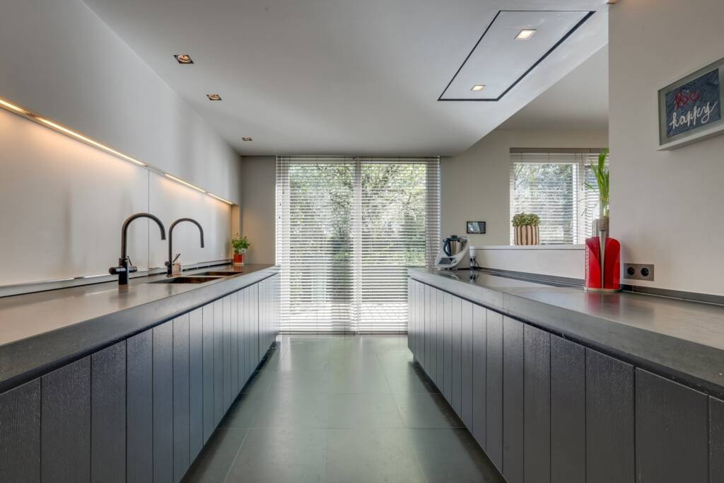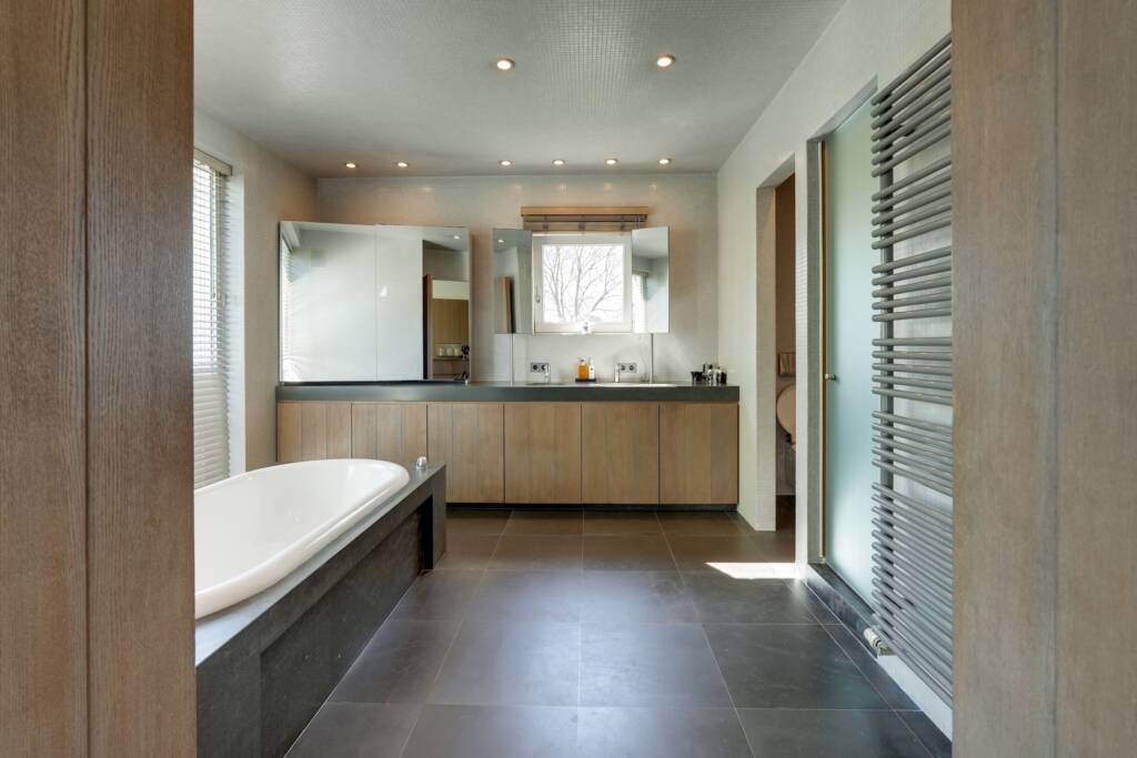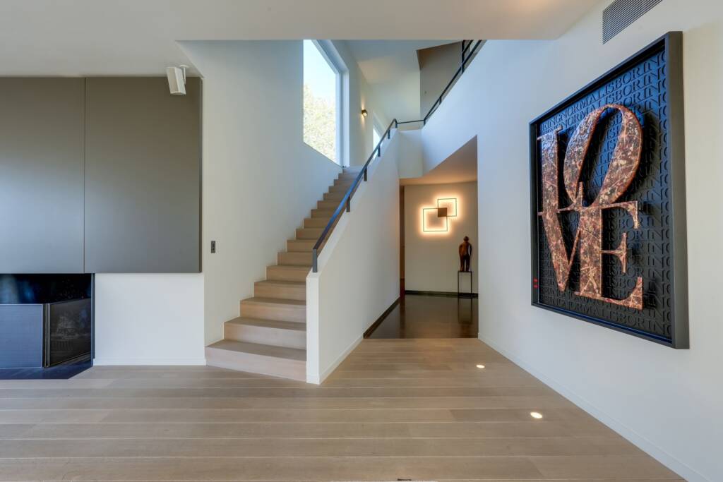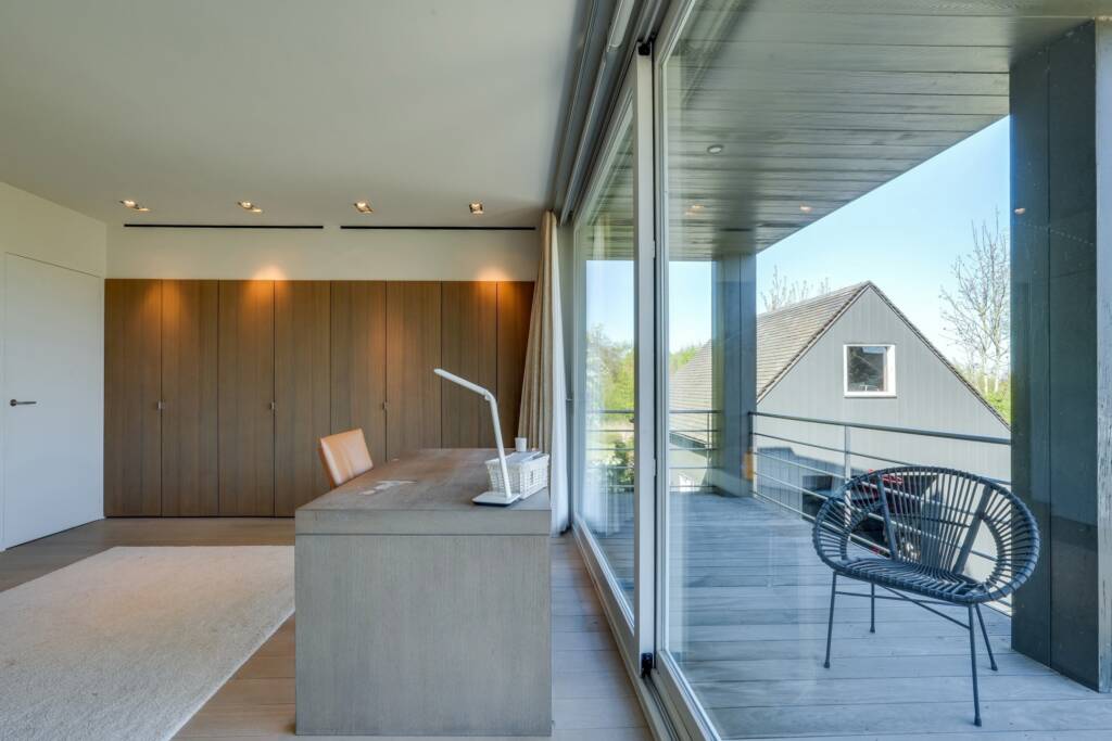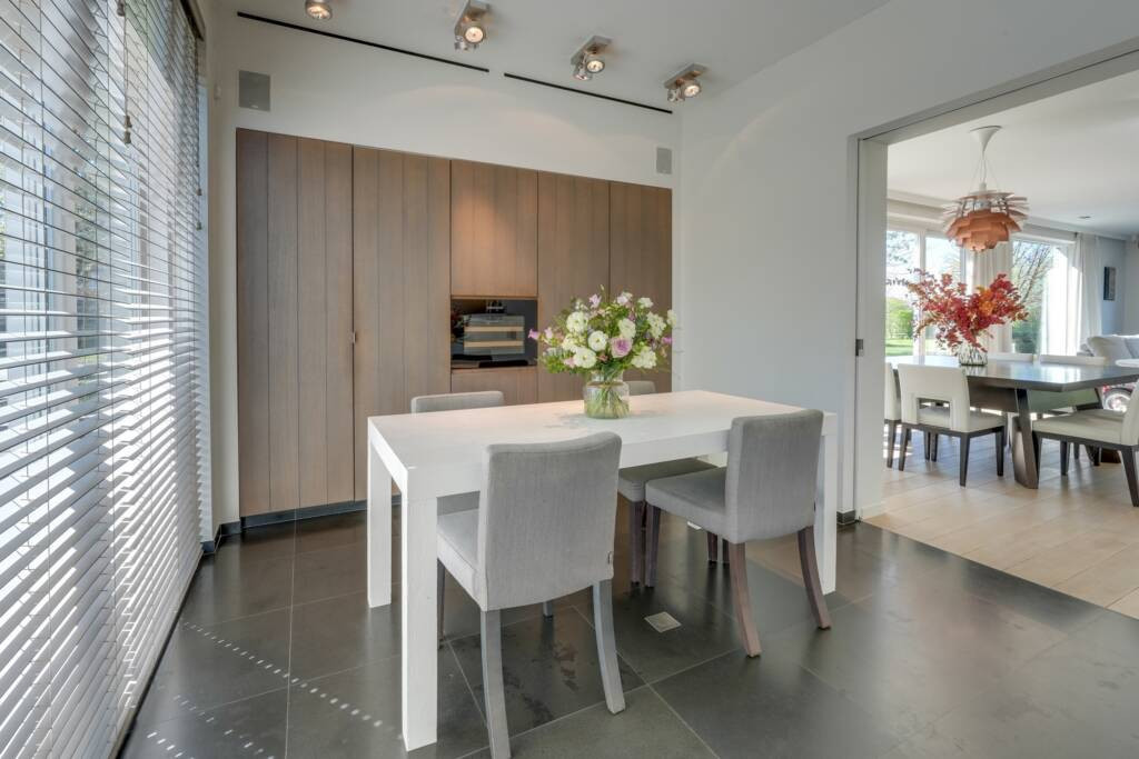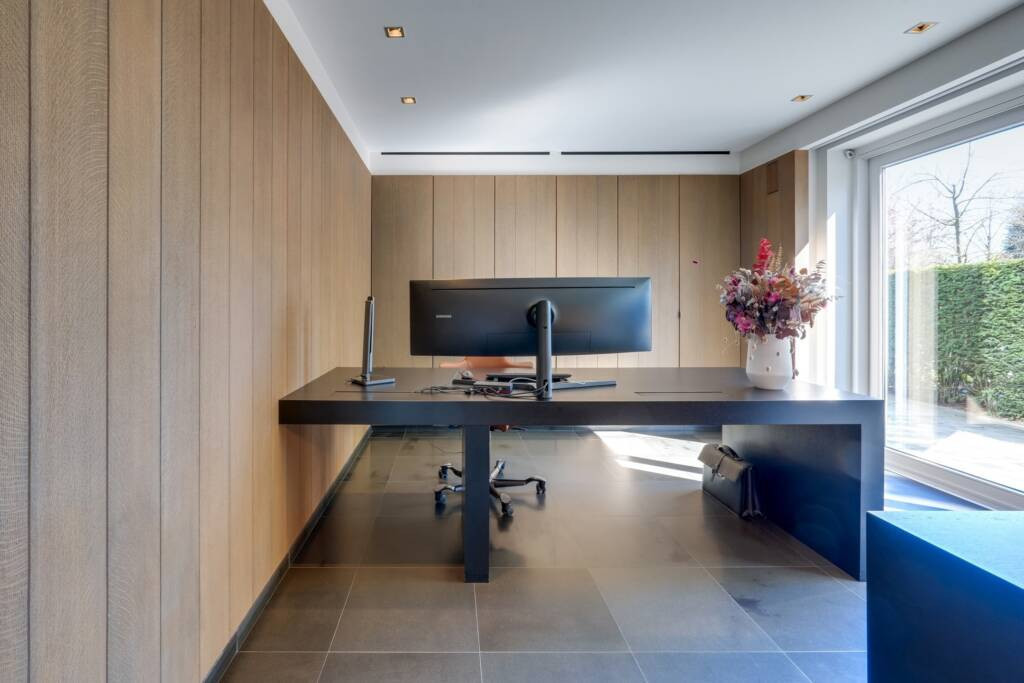 Le hall d’entrée mène à un vaste séjour lumineux avec parquet haut de gamme et cheminée ouverte. La cuisine équipée est reliée à une chambre froide, idéale pour cuisiner et recevoir. Grâce à un système domotique complet, la maison offre un confort moderne optimal. Un bureau à l’entrée convient parfaitement au travail à domicile.