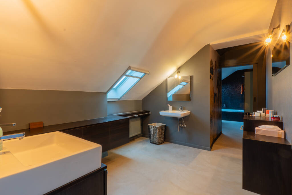 Le hall de nuit dessert 4 chambres, dont une suite parentale d’environ 20 m² avec accès direct à la salle de bains. Celle-ci est équipée d’une baignoire, d’une douche à l’italienne, d’une vasque et de nombreux rangements. Un dressing vient compléter cet étage.