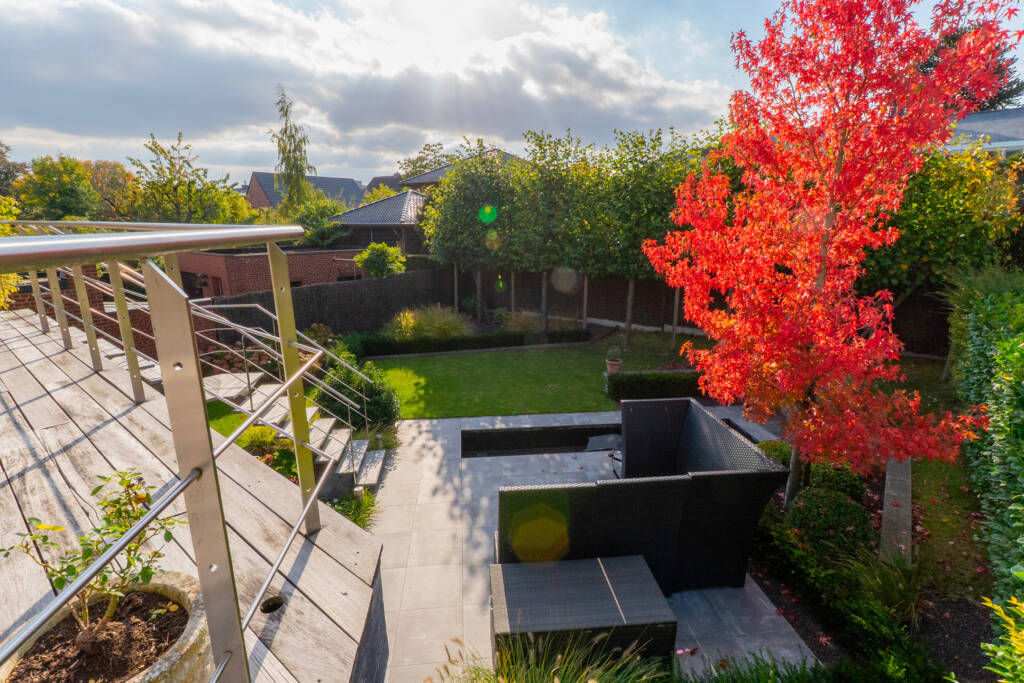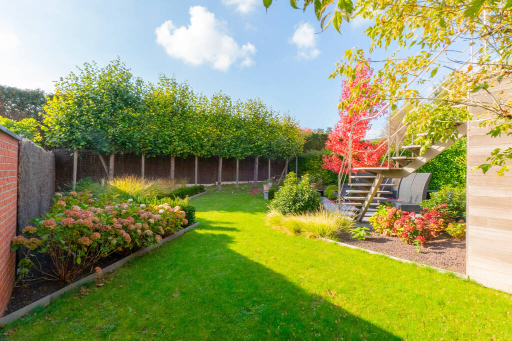 Les extérieurs offrent un beau jardin soigneusement entretenu, une terrasse en pierre bleue, idéale pour les moments de détente, ainsi que trois emplacements de parking à l’avant de la propriété.