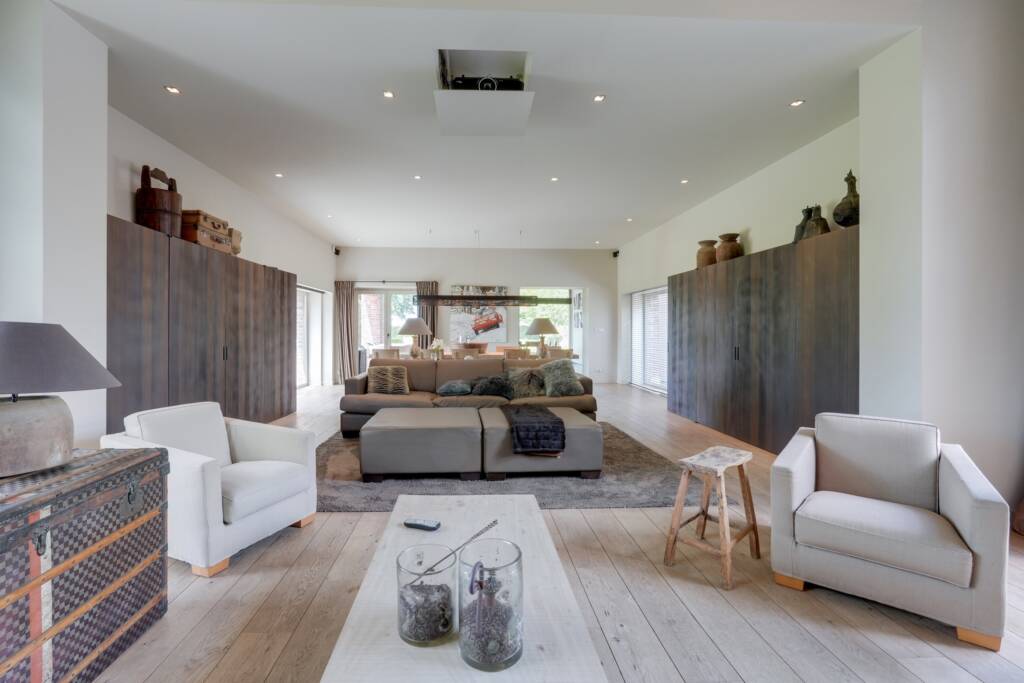 Caractéristiques : panneaux photovoltaïques, châssis en Afzelia double vitrage, chauffage central au mazout dans la sol au rez-de-chaussée et via radiateur à l’étage), citerne d’eau de pluie de 15.000 litres, station d’épuration individuelle, système d’alarme, vidéophonie et caméras, système audio Bose/Sonos.