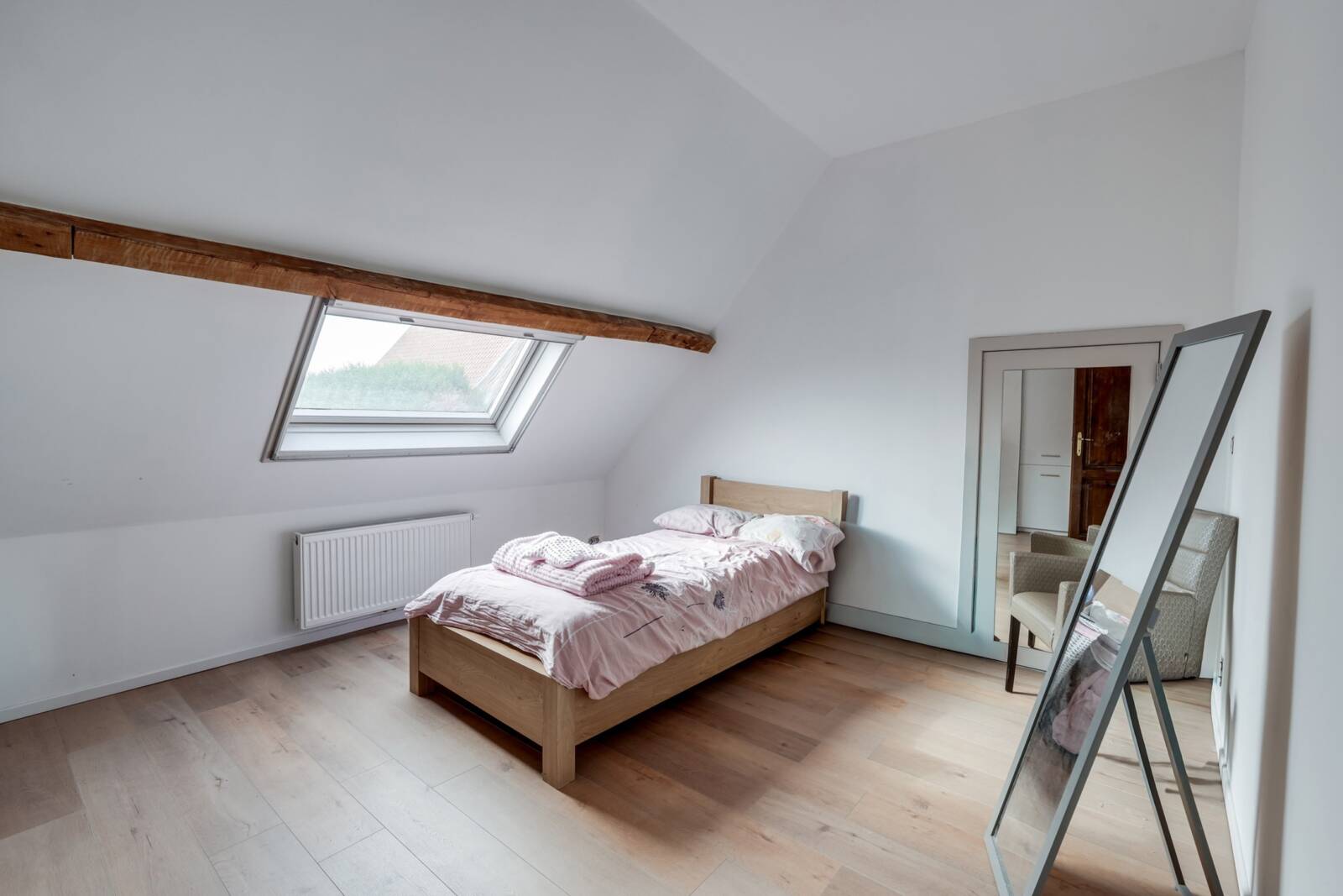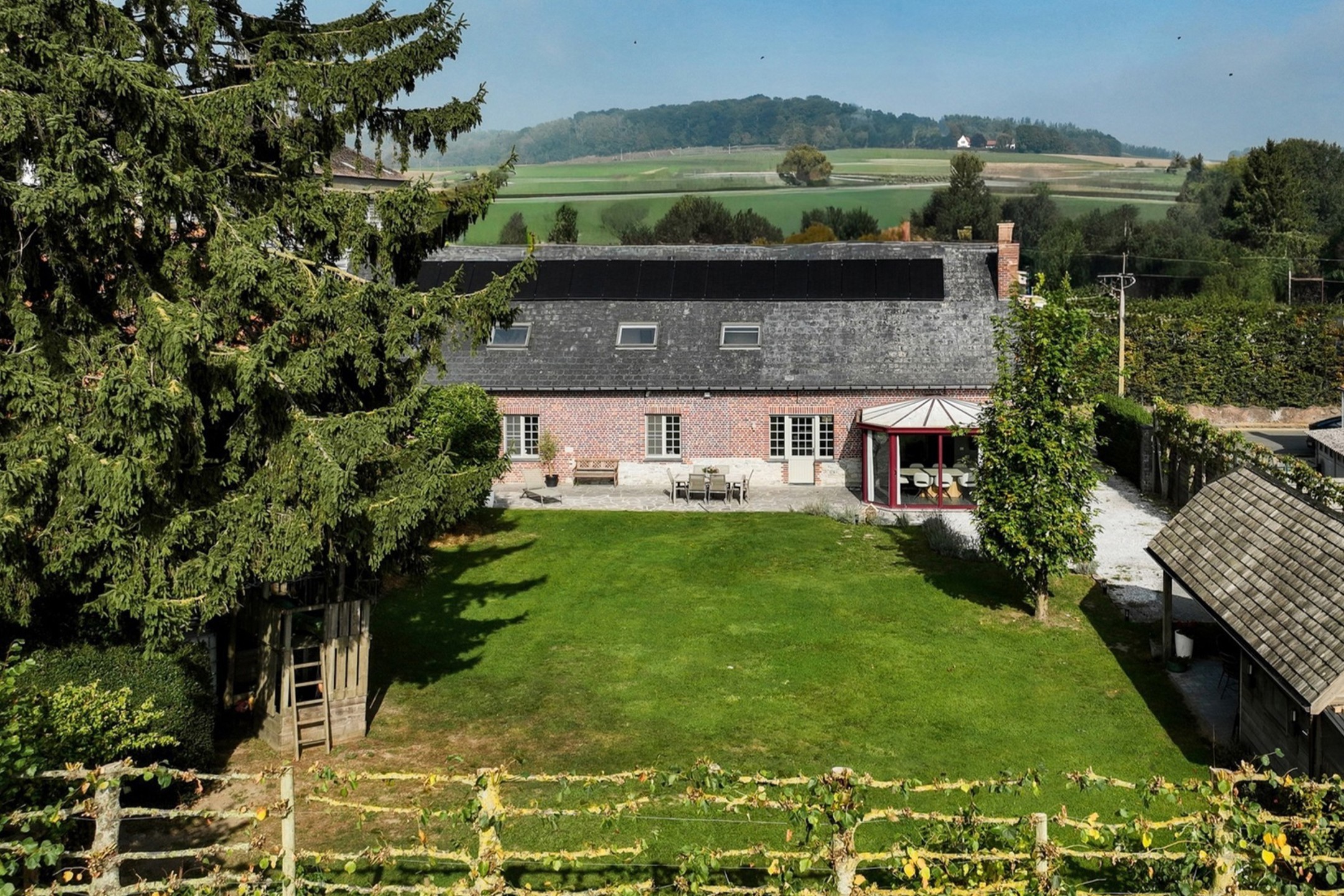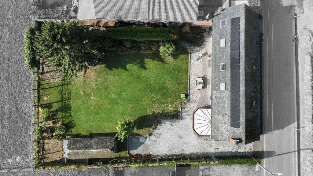 Cave saine.Caractéristiques : Panneaux photovoltaïques (6,7kWc), chauffage central au mazout, châssis en bois double vitrage, persiennes motorisées, système d’alarme, adoucisseur.