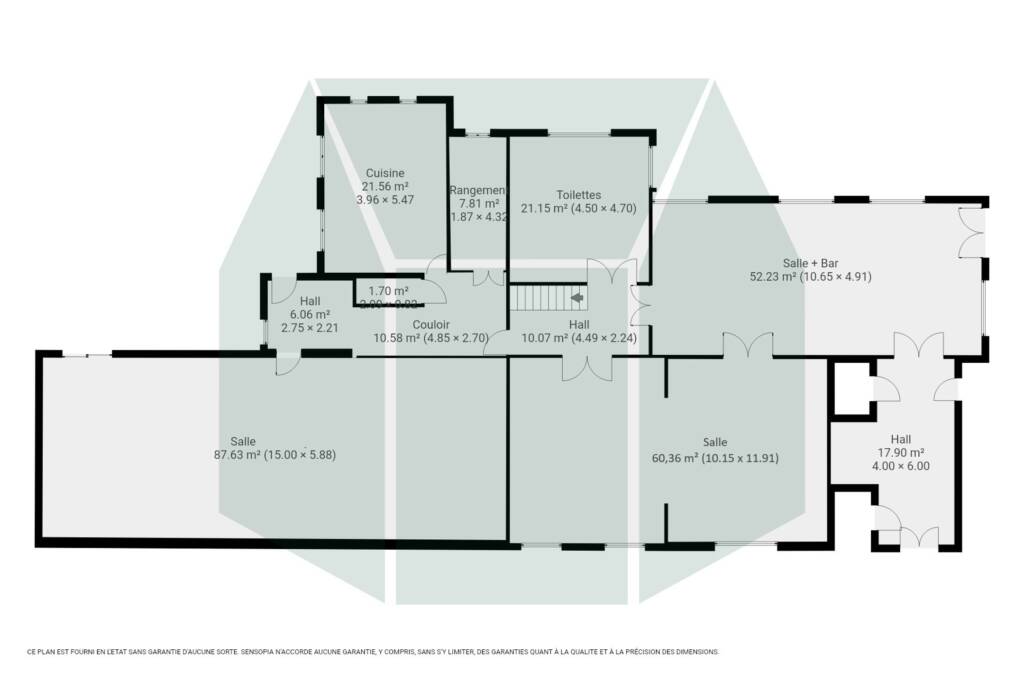 Les 3 salles de 90m², 60m² et 50m² ont été complètement rénovées en 2023 ainsi que le bar. Une cuisine professionnelle est idéalement placée afin de desservir les espaces.