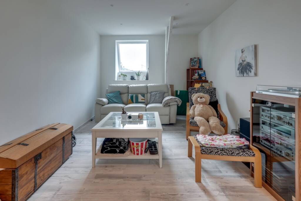 Le 2ème étage a été aménagé en 2021 et regroupe un hall de nuit avec espace salon, deux chambres et une salle-de-douche.