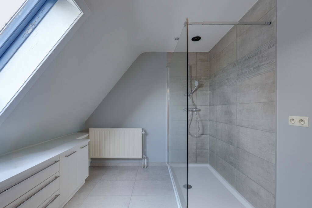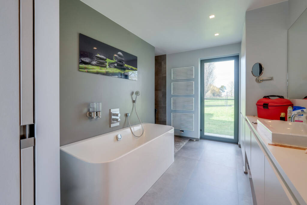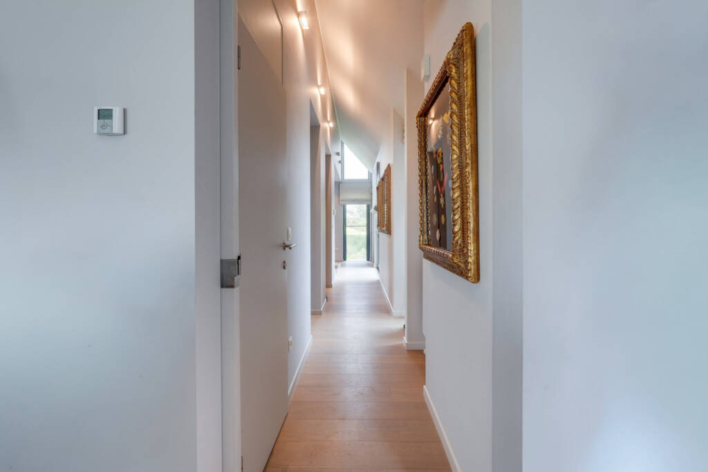 Avec une superficie habitable de 282 m² selon le certificat PEB, les volumes sont généreux et baignés d’une atmosphère chaleureuse. Les 21 panneaux solaires assurent par ailleurs une production d’énergie efficace et économique.
