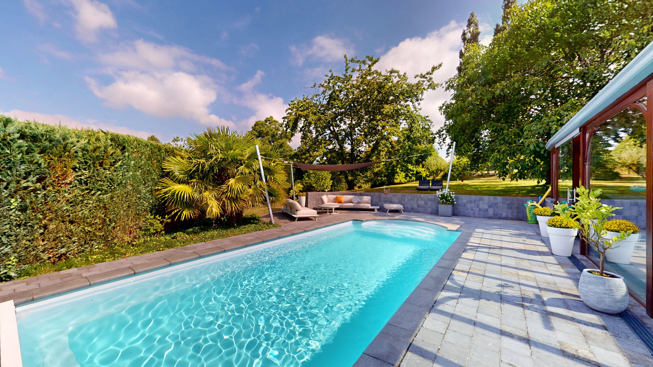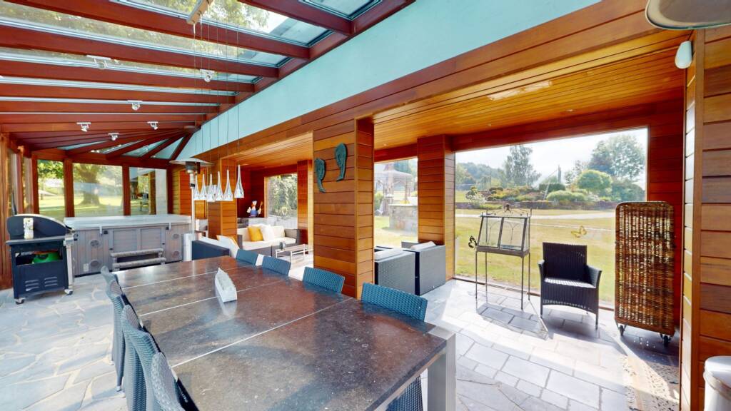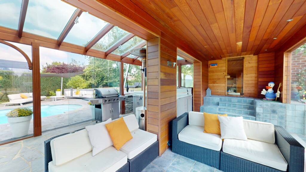 -Très jolie pergola vitrée avec jacuzzi et sauna de +/- 50 m²