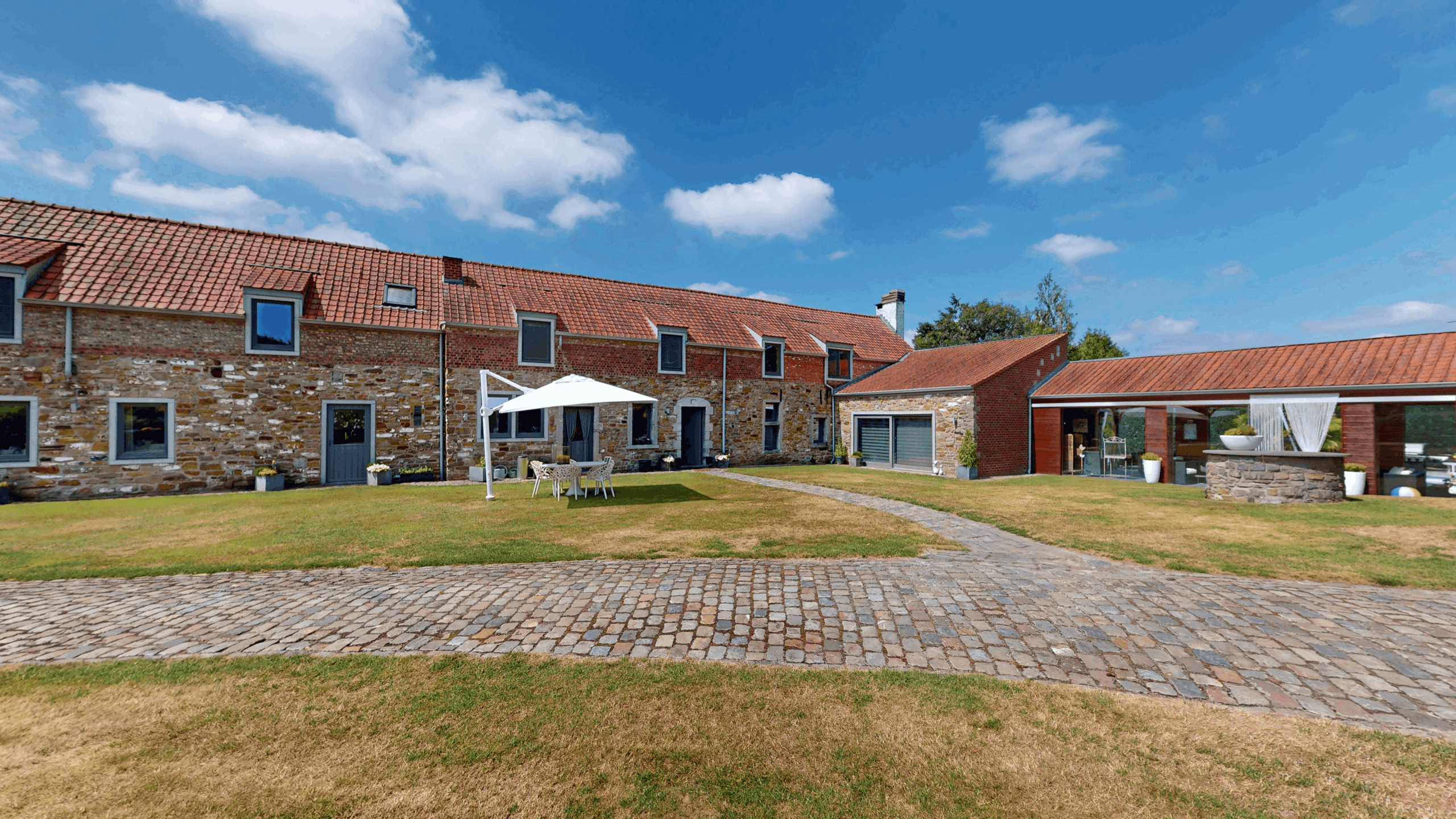 Cette charmante ferme en U datant de 1850 et récemment rénovée, offre +/- 400 m² habitables sur un vaste terrain de 60 ares. Située dans un quartier calme, elle séduit par sa belle vue dégagée, son authenticité préservée et son très bon état général tout en restant discrètement nichée à l’abri des regards. Ce magnifique corps de bâtisse associé à une spacieuse grange sur deux niveaux permet à une grande famille de s’y épanouir tout en y développant un projet professionnel, d’y exercer une profession libérale, développer un atelier ou de créer une habitation indépendante complémentaire. Un cadre de vie paisible, à la fois spacieux et chaleureux, alliant charme de l’ancien et confort contemporain.
