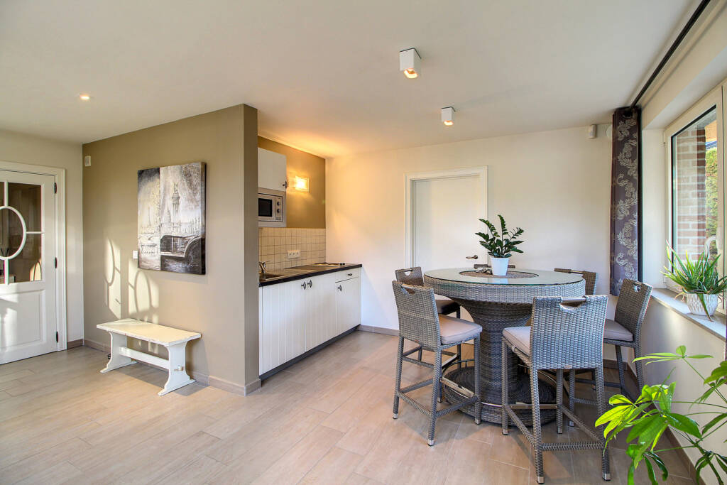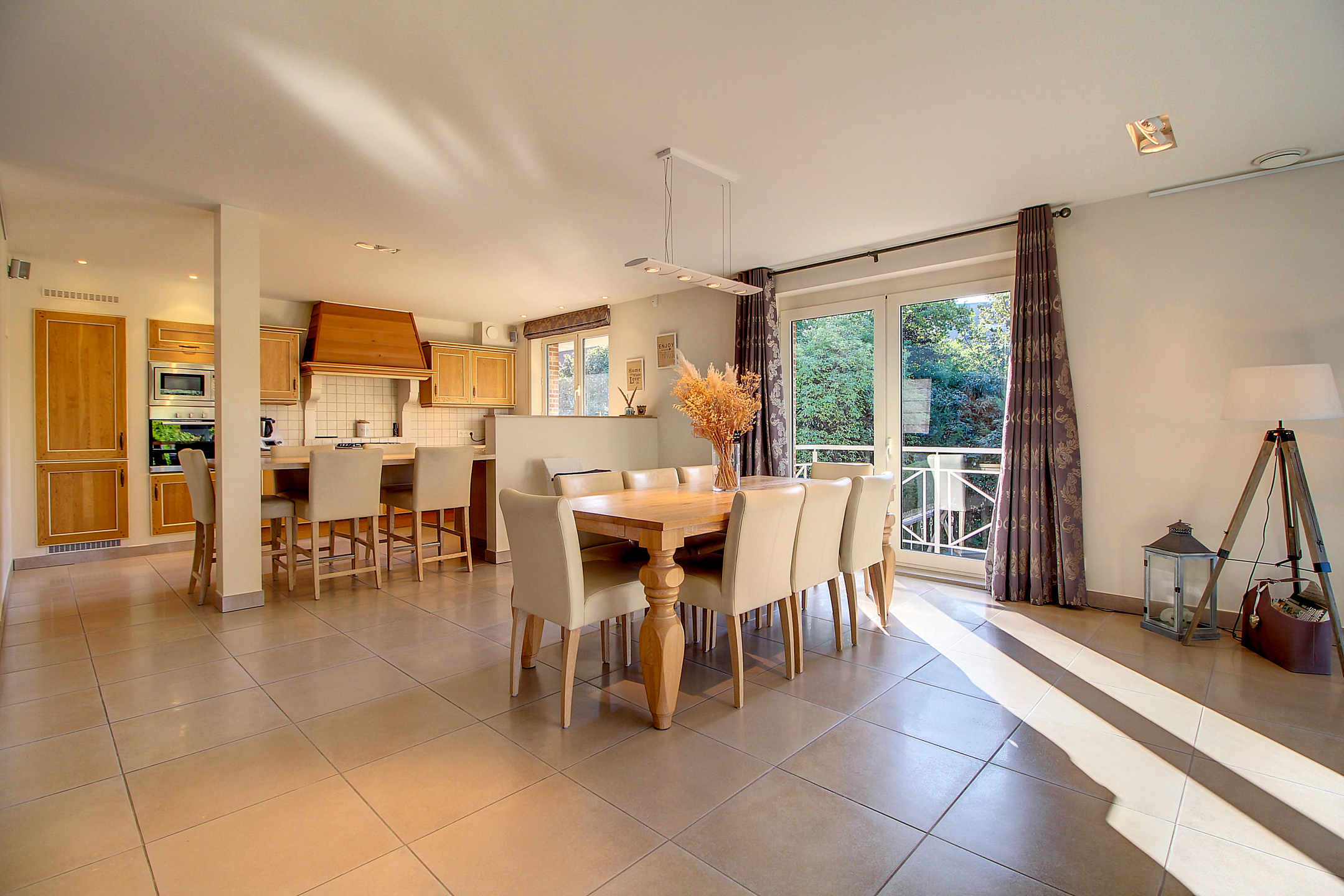 Au premier étage, une vaste pièce de vie s’ouvre à vous, comprenant un espace séjour ainsi qu’une cuisine équipée ouverte. Cette cuisine est équipée d’une plaque de cuisson au gaz, d’une hotte, d’un évier, d’un four, d’un micro-ondes, d’un réfrigérateur, d’un congélateur, d’un lave-vaisselle et d’un coin repas. Un espace bureau est également prévu pour ceux qui travaillant depuis chez eux. De plus, une chaufferie et un WC suspendu ajoutent à la commodité de cet étage.