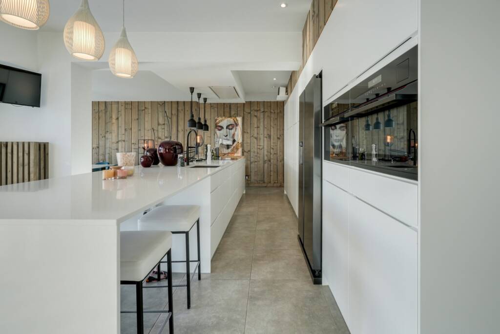 La cuisine entièrement équipée avec les technologies les plus récentes est un rêve pour tout amateur de gastronomie et le cœur de cette maison.