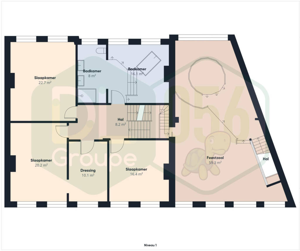 Au deuxième étage se trouve une chambre mansardée, idéale comme salle de jeux ou chambre(s) supplémentaire(s).