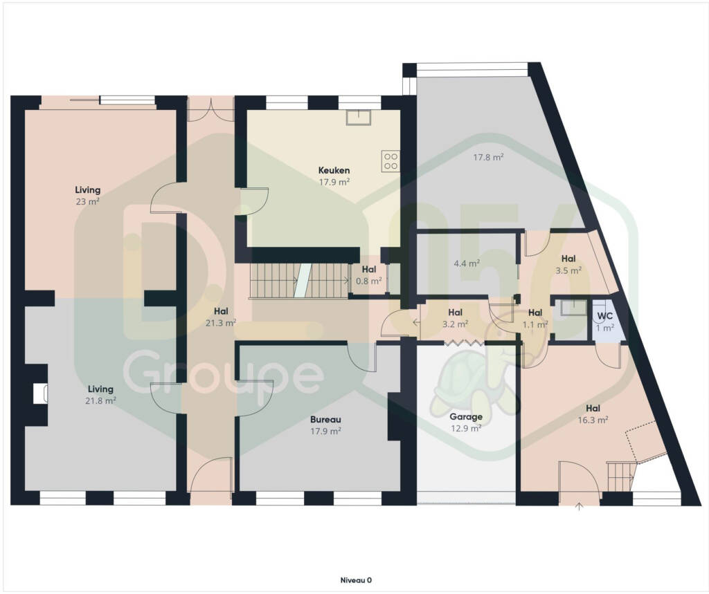 Au rez-de-chaussée, vous êtes accueilli dans un hall d’entrée spacieux qui donne accès à un bureau. Sur la gauche se trouve une salle à manger conviviale avec un grand espace de vie offrant une vue sur le jardin. Sur la droite, vous trouverez une cuisine entièrement équipée.