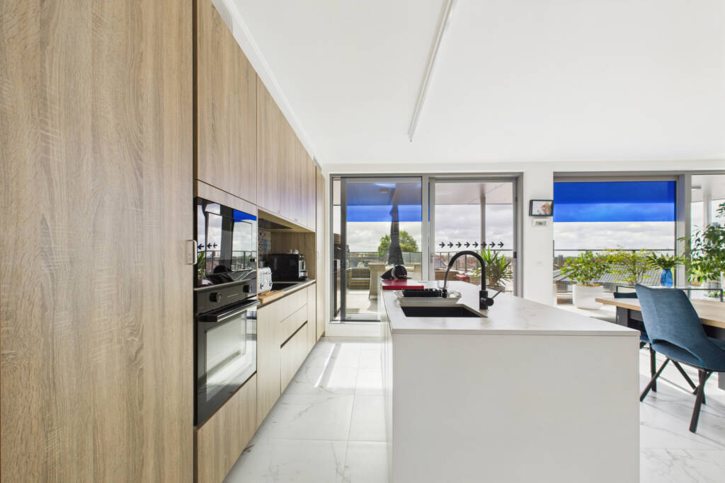 Dès l’entrée, vous accédez à la pièce de vie principale, composée d’un spacieux salon, d’un coin salle à manger et d’une cuisine ouverte entièrement équipée. L’ensemble s’ouvre sur une superbe terrasse offrant une vue imprenable sur le parc.
