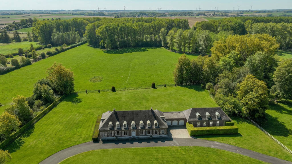 Idéalement située à proximité de Mons et en lisière de la Botte du Hainaut, cette propriété de 2 hectares ravira les amateurs de grands espaces. Surplombant la campagne avoisinante, la demeure offre un panorama verdoyant et reposant qui s’étend, quasi sans limite, bien au-delà des limites de la propriété.