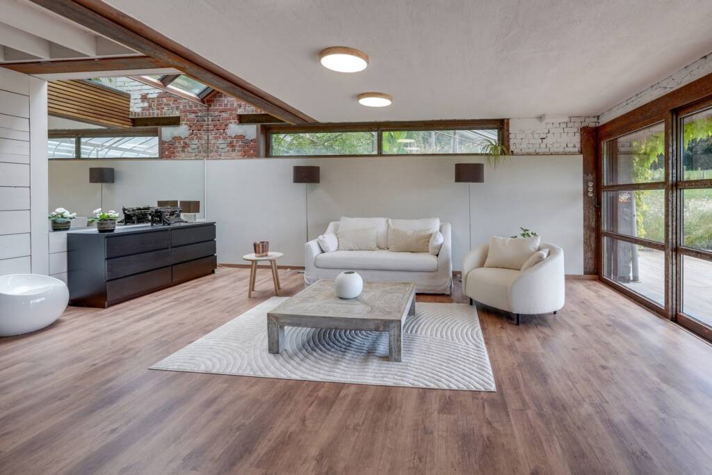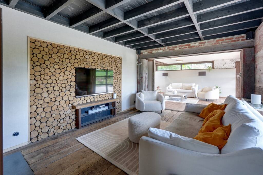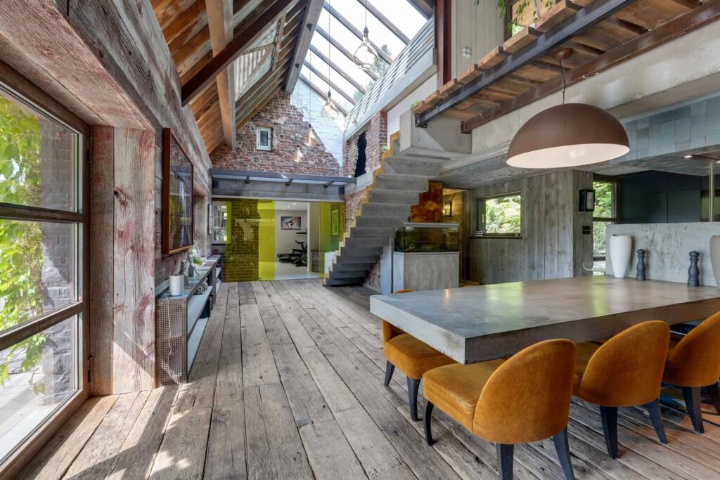 À l’orée du bois, dans un cadre naturel d’une rare beauté, découvrez cette longère atypique de ± 300 m², née de l’imagination d’un amateur éclairé de matériaux bruts et nobles.