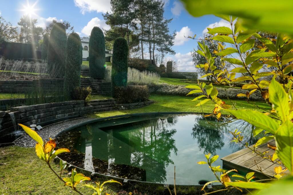 Dominant majestueusement la vallée, cette villa lumineuse d’inspiration italienne se distingue par son élégance intemporelle et un souci du détail d’une rare exigence. Pensée pour sublimer son environnement, elle profite d’une situation privilégiée offrant des panoramas dégagés sur la campagne environnante.Implantée sur un terrain de 35 ares magnifiquement paysager, elle déploie un cadre de vie unique où la sérénité règne : piscine naturelle, étang à koï, allées de promenade et plusieurs terrasses, dont une couverte, permettant de profiter, au fil des heures et des saisons, de différents points de vue sur la nature.