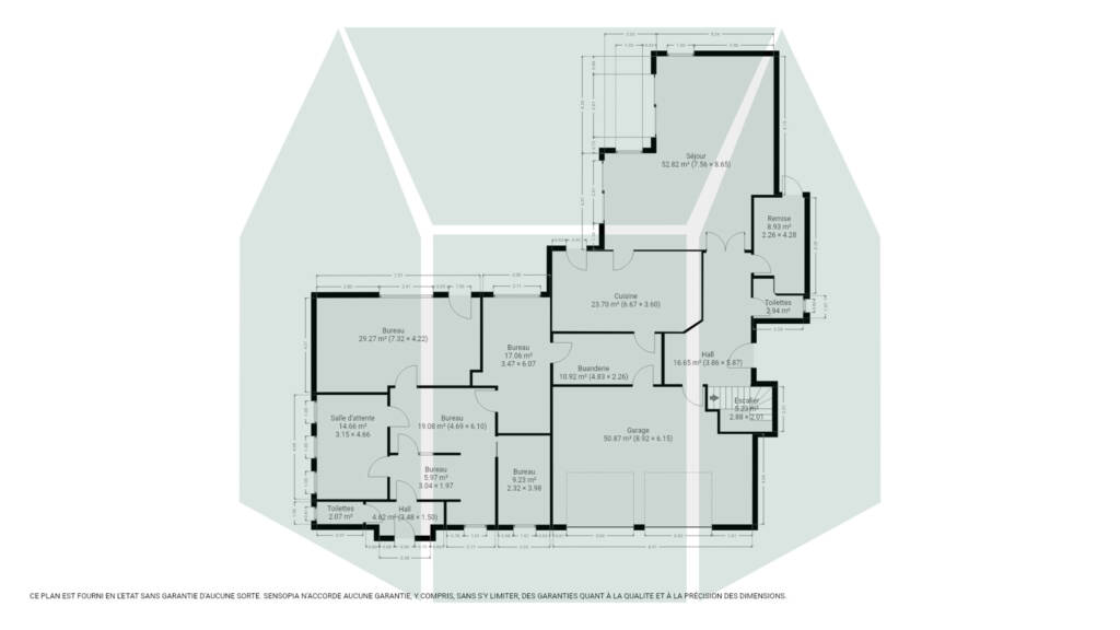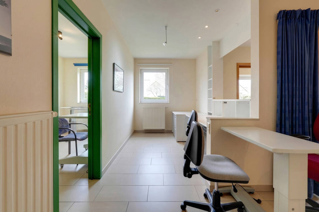 La partie dédiée à la profession libérale dispose d’un accès indépendant et comprend un hall d’entrée avec WC séparé, une salle d’attente, un espace d’accueil ainsi que plusieurs bureaux.