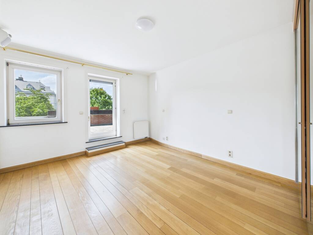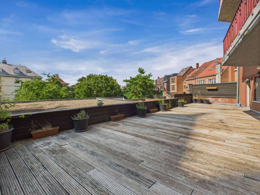 Hall d’entrée avec placards de rangement desservant un très grand séjour lumineux avec vue panoramique sur la Grand-Place, une cuisine équipée avec coin chaufferie, une buanderie séparée, un WC, hall de nuit desservant trois chambres avec placards intégrés et accès direct à la terrasse, spacieuse salle de bain avec baignoire, douche, double lavabo et second WC, une belle terrasse de 60 m².