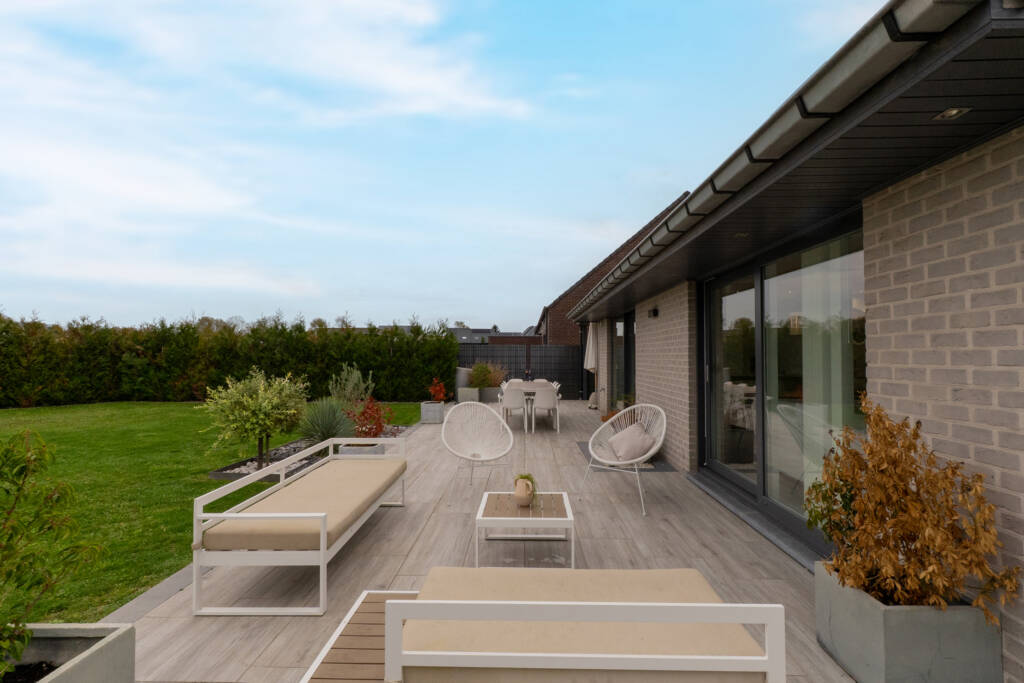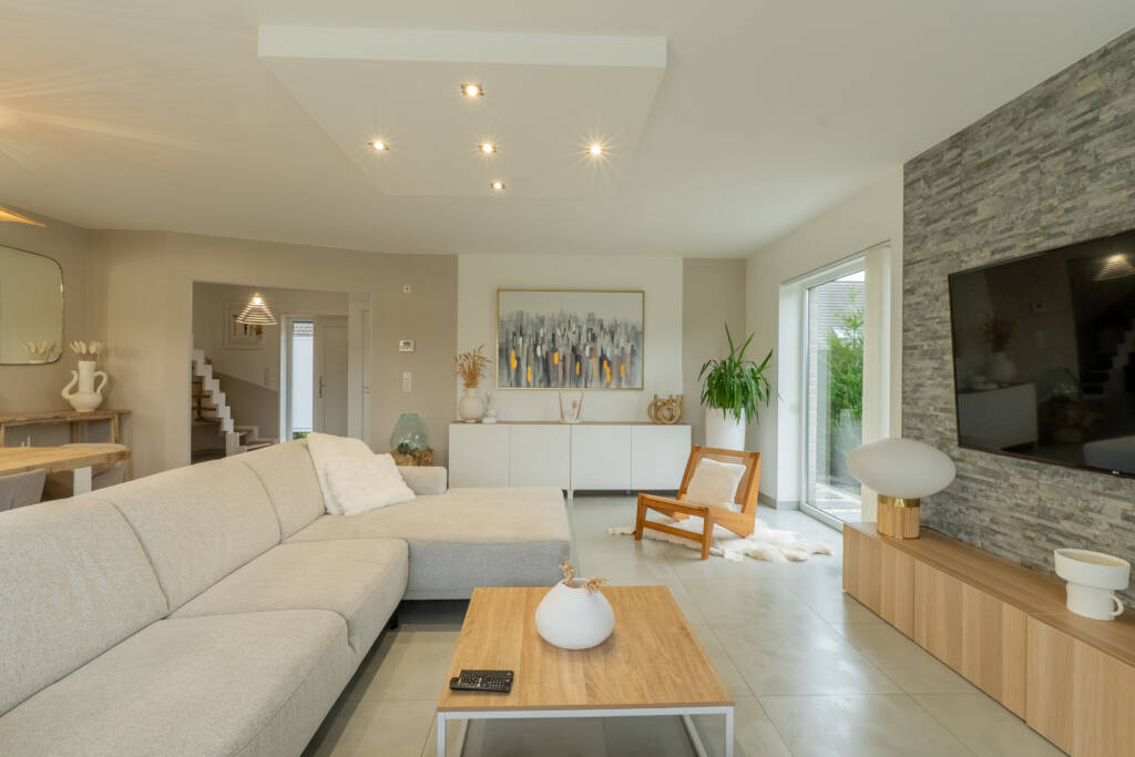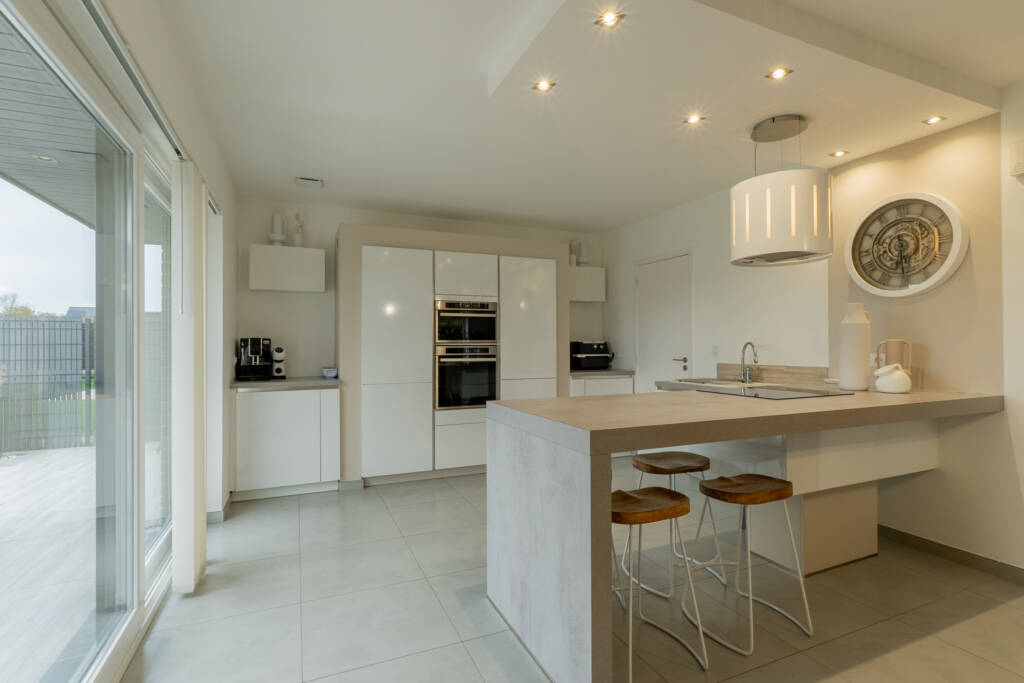 Construite en 2016 par Tybo, cette villa bénéficie d’un niveau de confort remarquable. Le chauffage central au gaz par le sol au rez-de-chaussée, associé à une chaudière à condensation Vaillant et un boiler intégré, assure une performance énergétique optimale. L’ensemble est complété par des châssis en PVC double vitrage, une VMC double flux neuve, une électricité conforme et un adoucisseur d’eau. La maison dispose également d’une citerne d’eau de pluie, d’un système d’alarme avec vidéosurveillance, ainsi que de 14 panneaux photovoltaïques garantissant une excellente autonomie énergétique. Les finitions intérieures allient élégance et modernité, avec un carrelage contemporain au rez-de-chaussée et un revêtement imitation parquet à l’étage. Enfin, son PEB A atteste de son efficacité énergétique exemplaire.