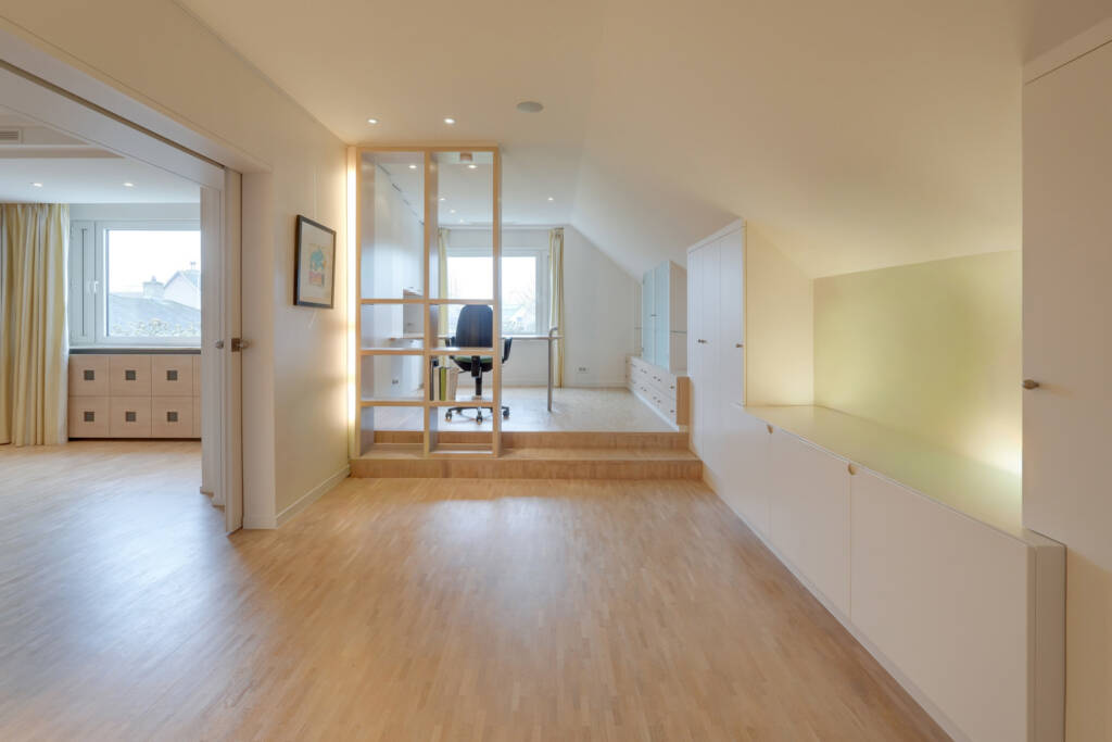 Une partie distincte de la maison est aménagée en espace polyvalent, pouvant être utilisée par exemple par des médecins, psychologues, … Cette propriété offre également la possibilité d’exercer des activités libérales et se prête parfaitement à l’aménagement d’un logement kangourou avec entrée séparée, ce qui rend l’ensemble particulièrement polyvalent.