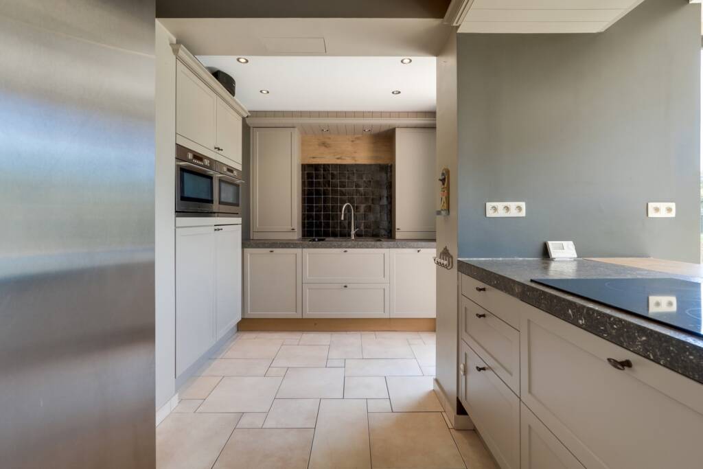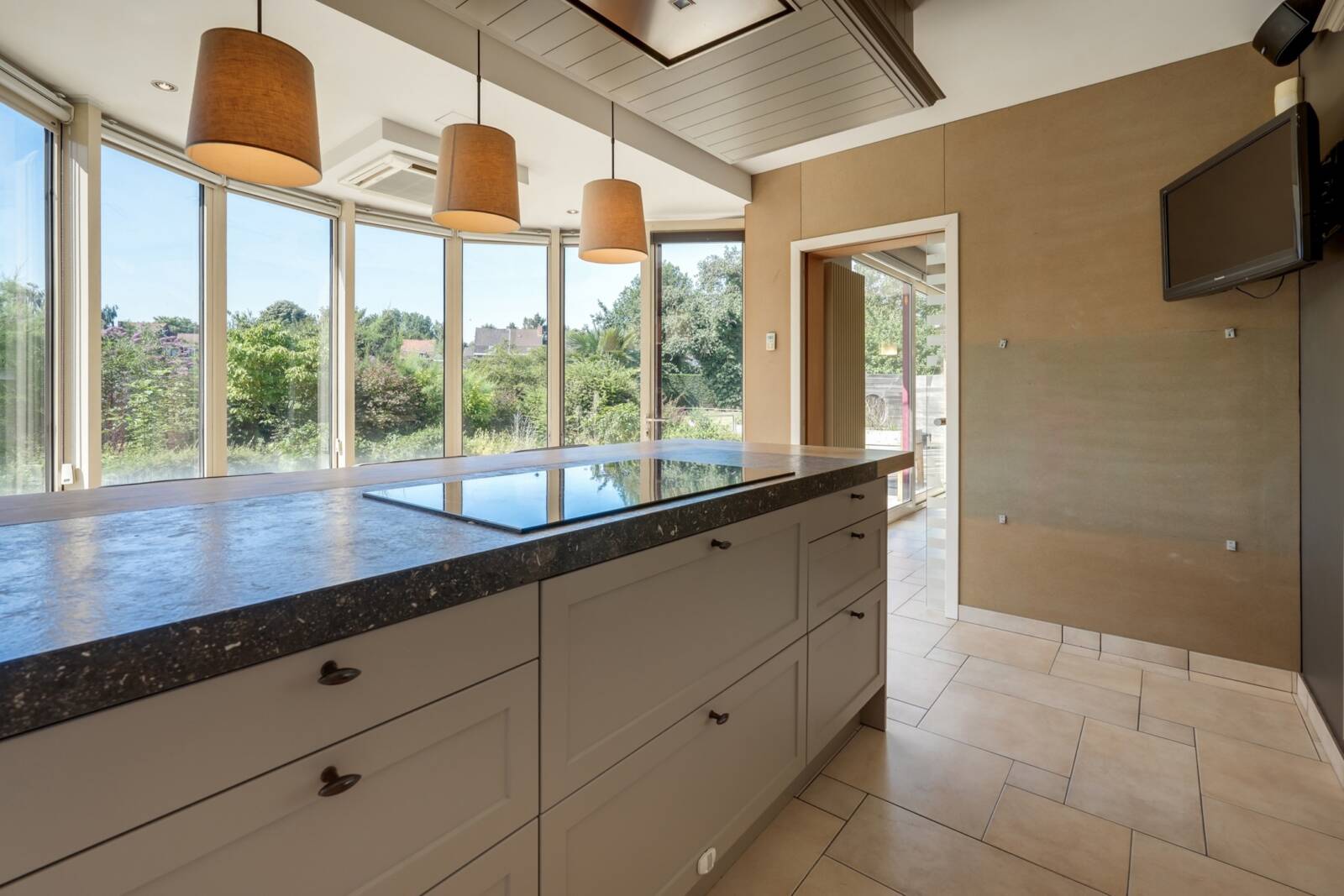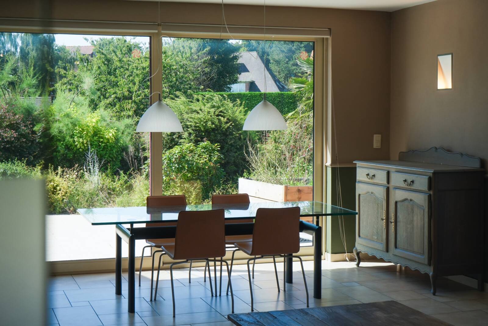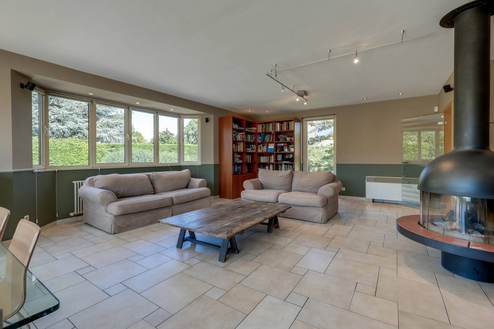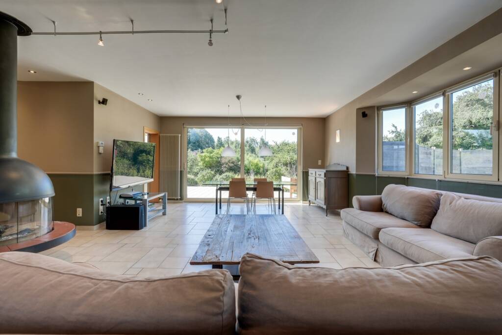 Le rez-de-chaussée se compose d’un vaste salon/séjour équipé d’un poêle à bois et possédant une vue sur le jardin arboré ainsi qu’une cuisine complètement équipée. Il possède également une aile aménagée en espace de travail possédant un accès distinct, avec deux bureaux, une salle d’attente et 5 emplacements de parking.