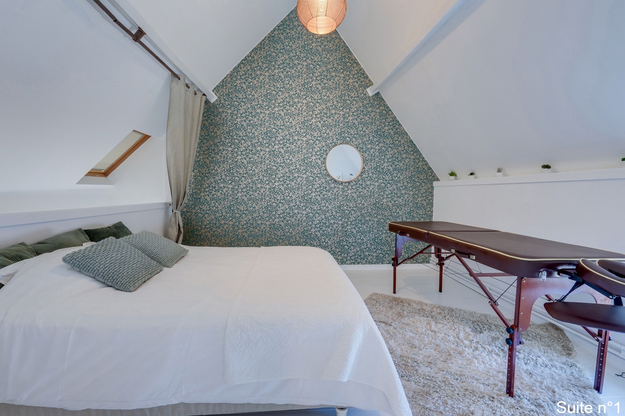 Ze is opgebouwd rond een aangelegde tuin met een zwembad van 12 meter, wat rust en privacy garandeert.De 125 m² suite bestaat uit een woonkamer met keuken, een slaapkamer, een badkamer en een privé-tuin.