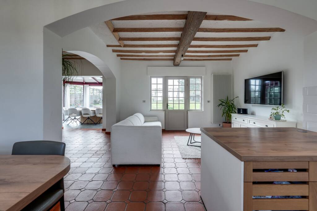 Rustig gelegen en toch dicht bij de belangrijkste invalswegen, zal deze recent gerenoveerde hoeve u verleiden met haar authenticiteit en lichtinval.