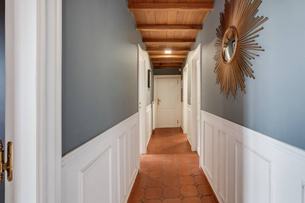 Nachthal met dressing, die toegang biedt tot 4 slaapkamers met maatwerk kasten en een tweede apart toilet.Buitenkant: