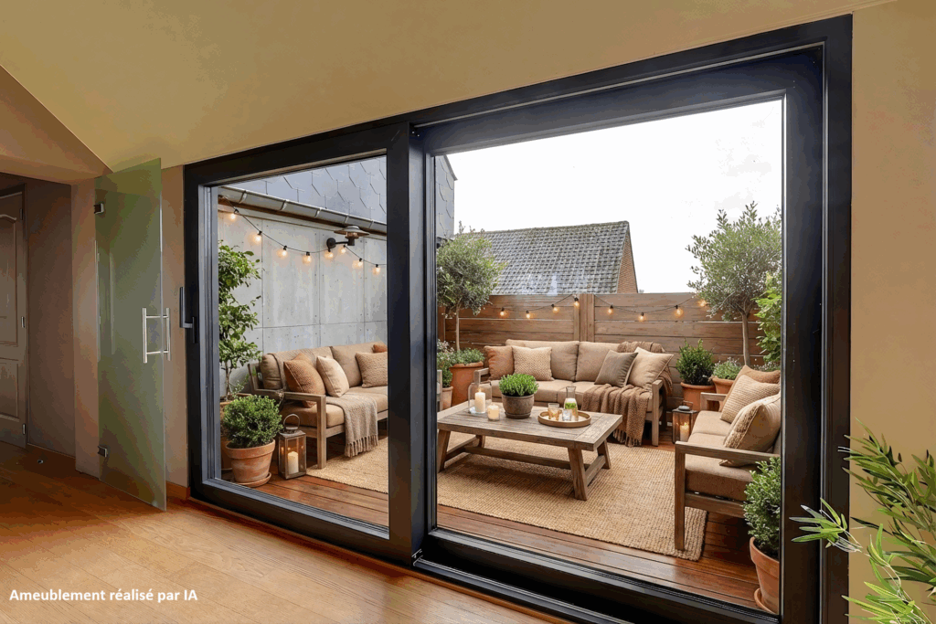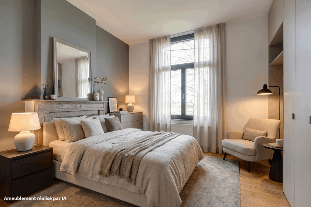Op de eerste verdieping bevinden zich vier ruime slaapkamers (ca. 18, 19, 12 en 23 m²), waarvan één met terras (ca. 12 m²), evenals een badkamer, wat zorgt voor optimaal comfort. Deze verdieping is momenteel ingericht als appartement en beschikt over een aangename leefruimte met toegang tot het terras.