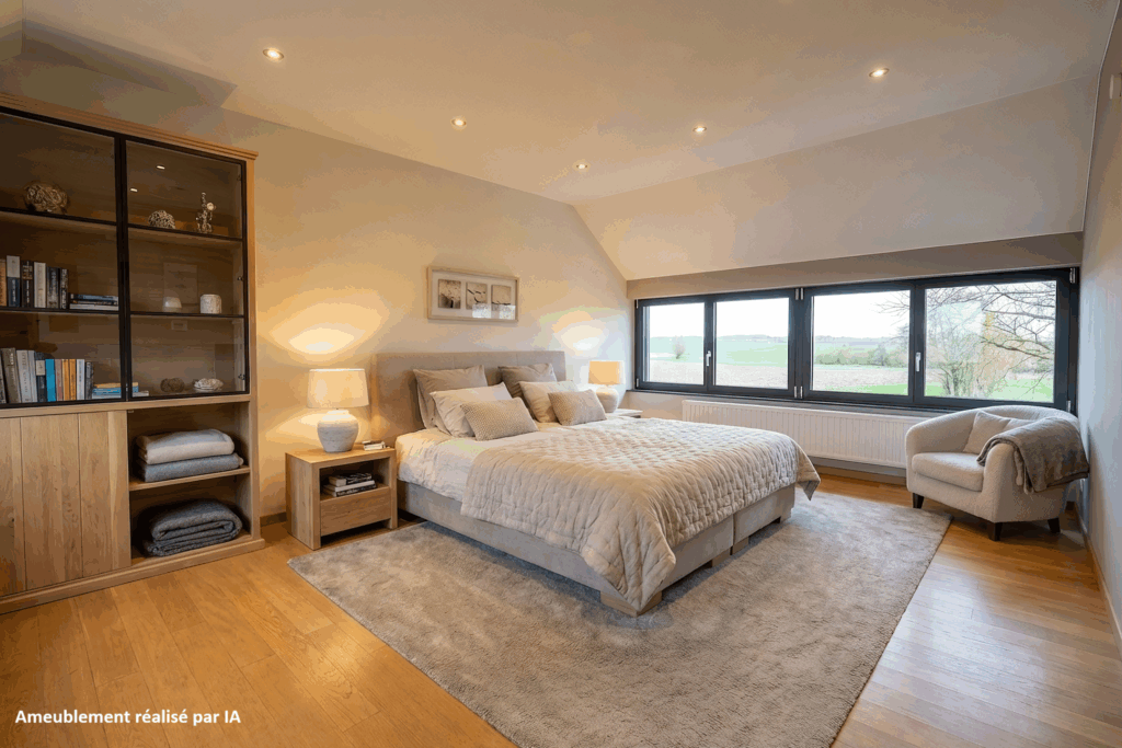 Geen renovatiewerken nodig: conforme elektrische installatie, EPC-label D (294 kWh/m².jaar – 20221123024102), aluminium ramen met driedubbele beglazing, waterverzachter, centrale verwarming op gas (tank van 2.800 L) en een individuele waterzuiveringsinstallatie. Het gebouw is volledig onderkelderd.