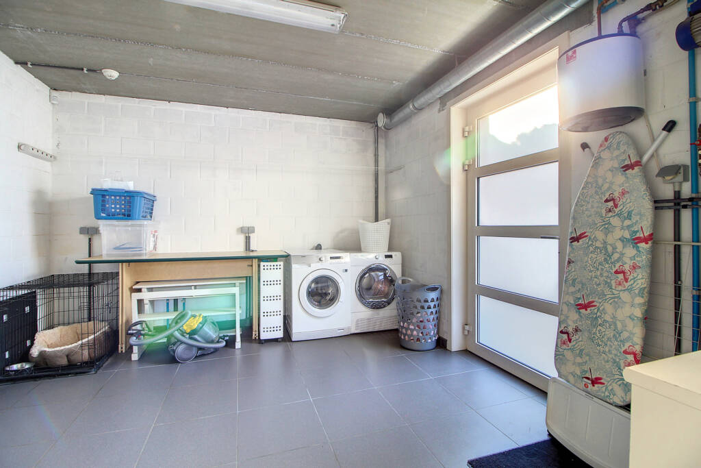 Au rez-de-chaussée, l’entrée vous accueille avec style et élégance. Vous serez immédiatement séduit par la pièce de vie baignée de lumière, dotée d’un superbe escalier flottant qui relie les 3 niveaux de la maison. Cette pièce comprend un salon spacieux ainsi qu’une petite cuisine moderne. De plus, vous trouverez un espace vestiaire pratique, un WC suspendu séparé avec lave-mains, et un garage carrelé pouvant accueillir 2 voitures, équipé d’une borne de recharge. Une buanderie fonctionnelle complète cet étage.