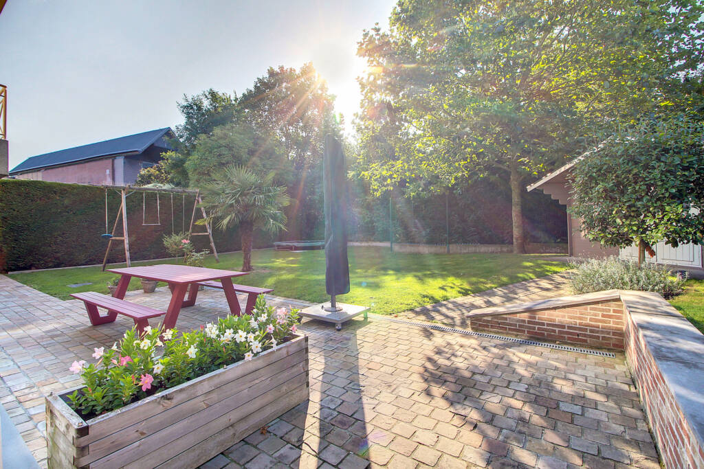 A l’extérieur, vous profiterez d’une terrasse en pavés ainsi que d’un jardin clôturé qui vous assure une intimité totale sans aucun vis-à-vis. De plus, un abri de jardin en bois et un passage latéral sécurisé par un portail ajoutent à la fonctionnalité de l’espace extérieur.
