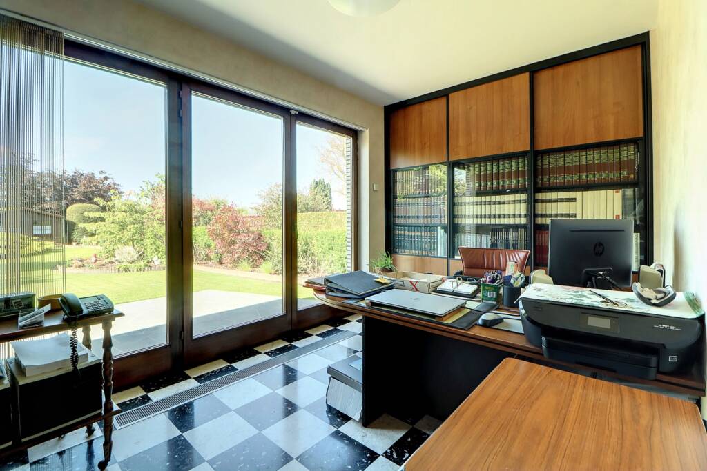 Begane grond: hal met toilet, zit/woonkamer, studeerkamer met op maat gemaakte meubels, ingerichte keuken met uitzicht over de tuin.Hal: hal die leidt naar 2 grote slaapkamers en een badkamer.1e verdieping: hal die leidt naar een grote slaapkamer, 2...