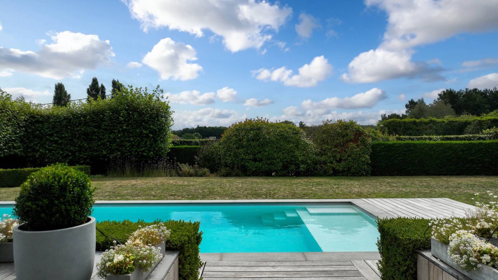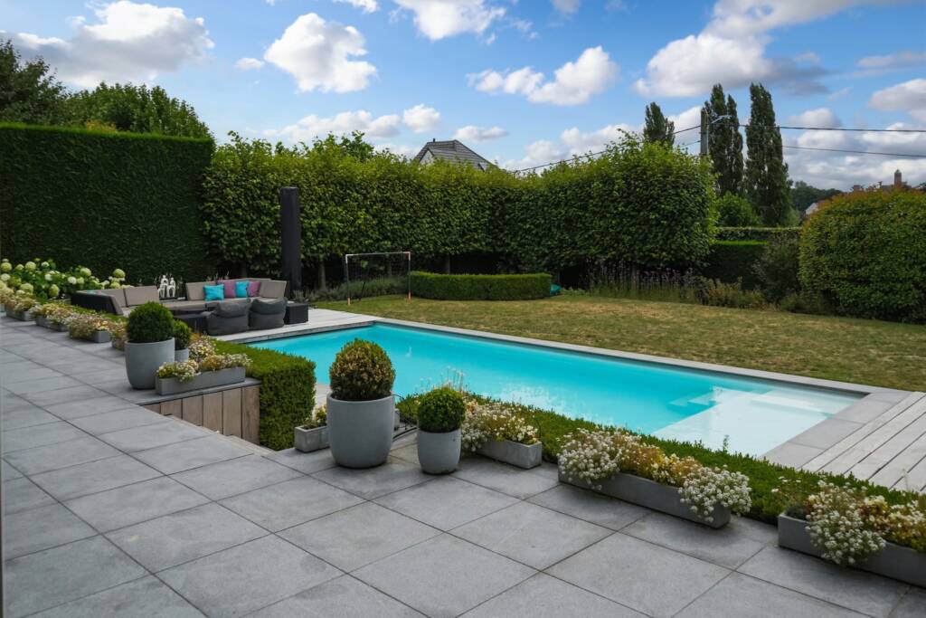 De prachtig aangelegde tuin vormt een waar toevluchtsoord. Het verwarmde zwembad (warmtepomp), de terrassen en de ontspanningsruimtes nodigen uit om volop te genieten van zonnige dagen in een intieme en groene omgeving.