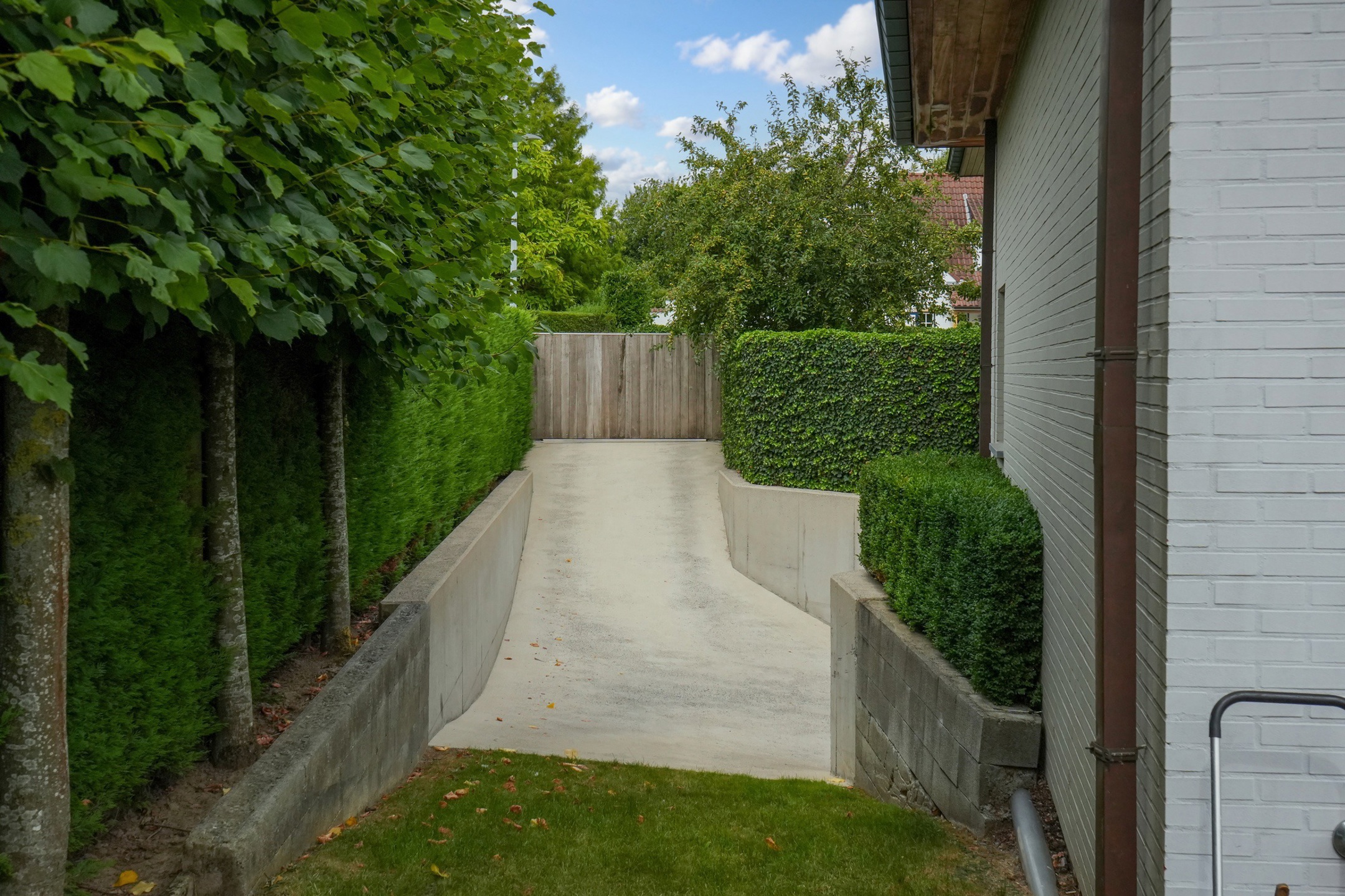 De villa is volledig onderkelderd en voorzien van een automatische poort die toegang biedt tot een garage (plaats voor 3 à 4 wagens), een fietsenruimte, een ruime bergruimte en een wijnkelder.