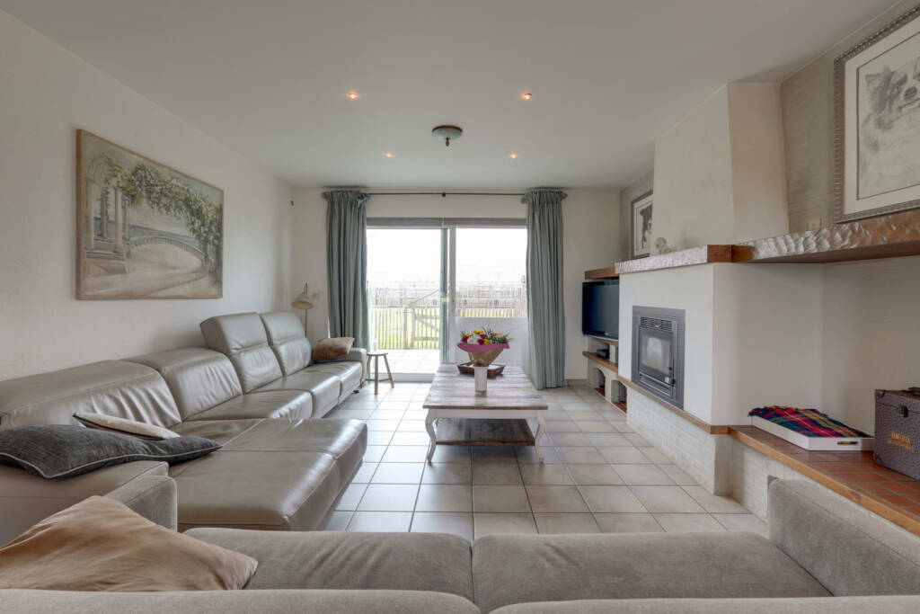 Binnen in de villa bevinden zich drie ruime slaapkamers, een badkamer met ligbad, inloopdouche, dubbele wastafel en toilet. De royale woonkamer, uitgerust met een pelletkachel en zicht op het terras, straalt een gezellige sfeer uit. De open ruimte omvat tevens de eet- en woonkamer. De lichtrijke leefkeuken is voorzien van alle moderne apparatuur, inclusief een Amerikaanse koelkast, dubbele spoelbak en een kookeiland met ontbijthoek, overal met prachtig uitzicht op het omliggende landschap. Daarnaast is er nog een ruime bijkeuken en een grote wasruimte. Op de eerste verdieping bestaat de mogelijkheid tot het inrichten van meerdere slaapkamers of andere ruimtes naar wens.