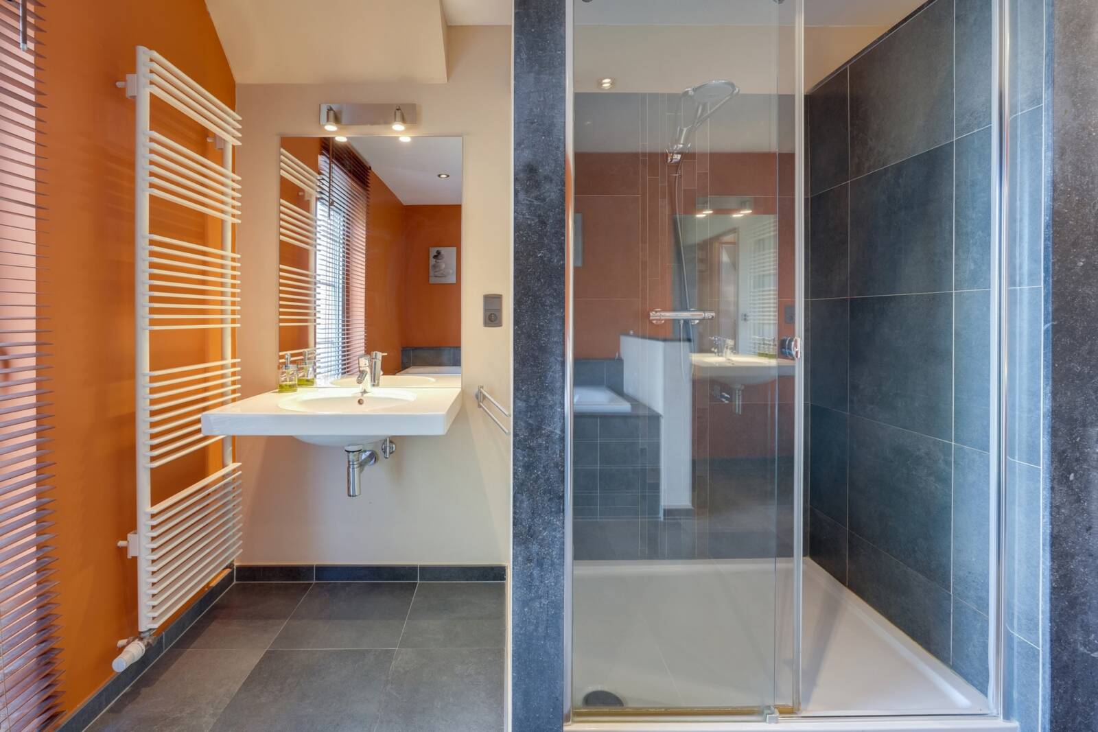 Drie mooie slaapkamers, waarvan één met dressing en uitzicht op de tuin, een volledig uitgeruste badkamer (dubbele wastafel, douche, bad) en een ruime overloop die kan worden ingericht als bureau of ontspanningsruimte.Kelder (±140 m²)