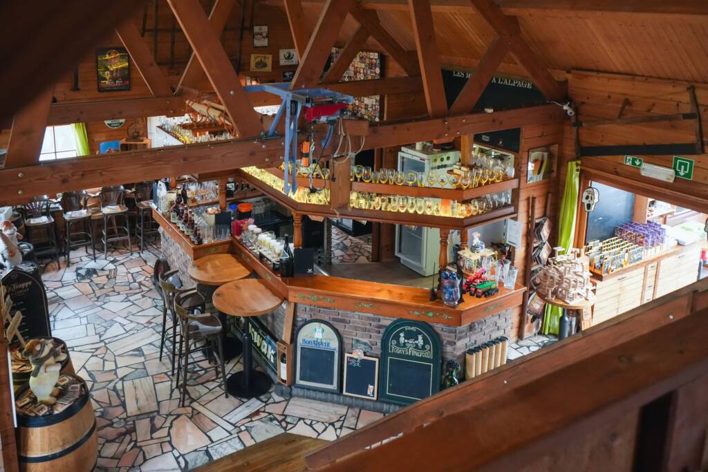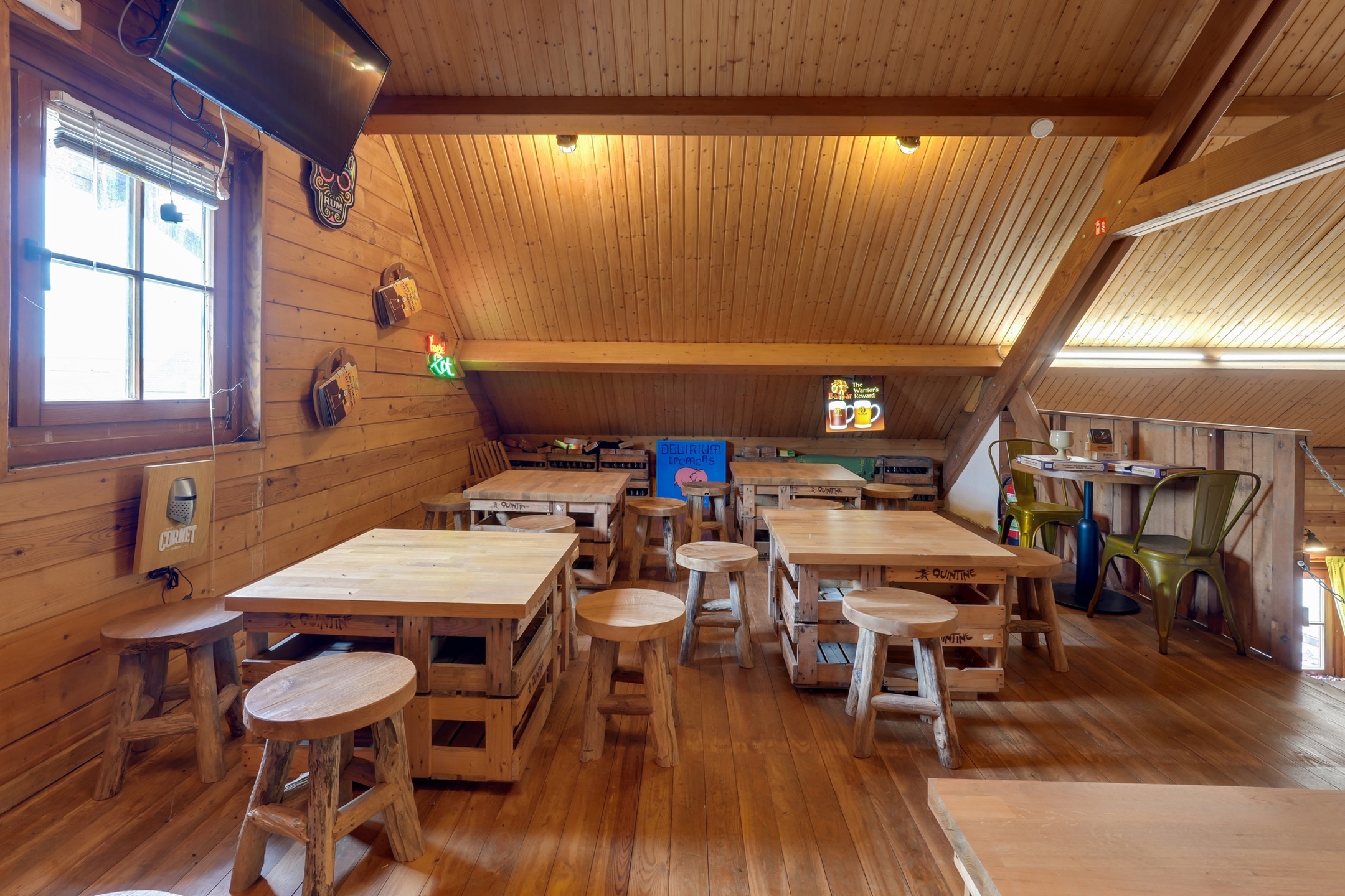 De hoofdingang geeft toegang tot een grote zaal, aangevuld met een veranda en een verdieping. De volledige ruimte biedt plaats aan ongeveer 100 gasten. Een centrale bar is eveneens aanwezig.